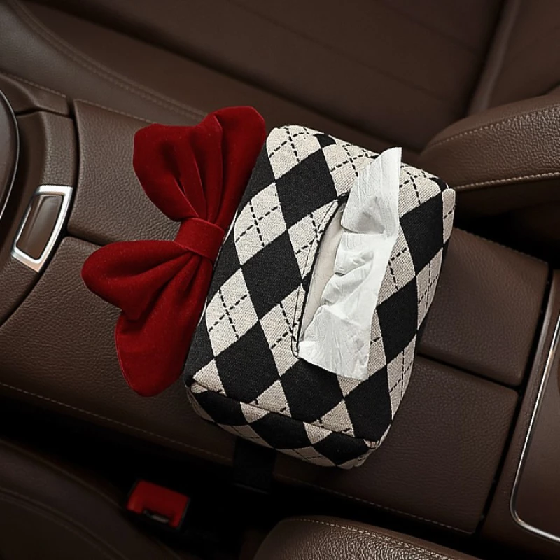 This stylish car seat back tissue holder blends classic argyle patterns with a chic velvet bow. Made with durable fabric, it attaches easily to most car seat headrest poles. The open-top design ensures quick tissue access, while the elegant decor elevates your car’s interior style.