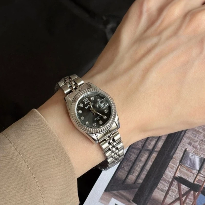 - Care Instructions: To extend the lifespan of the watch, avoid exposure to harsh chemicals, extreme temperatures, and strenuous physical activity. Keep the polished case and bracelet free of scratches, and protect the crystal accents from impact.