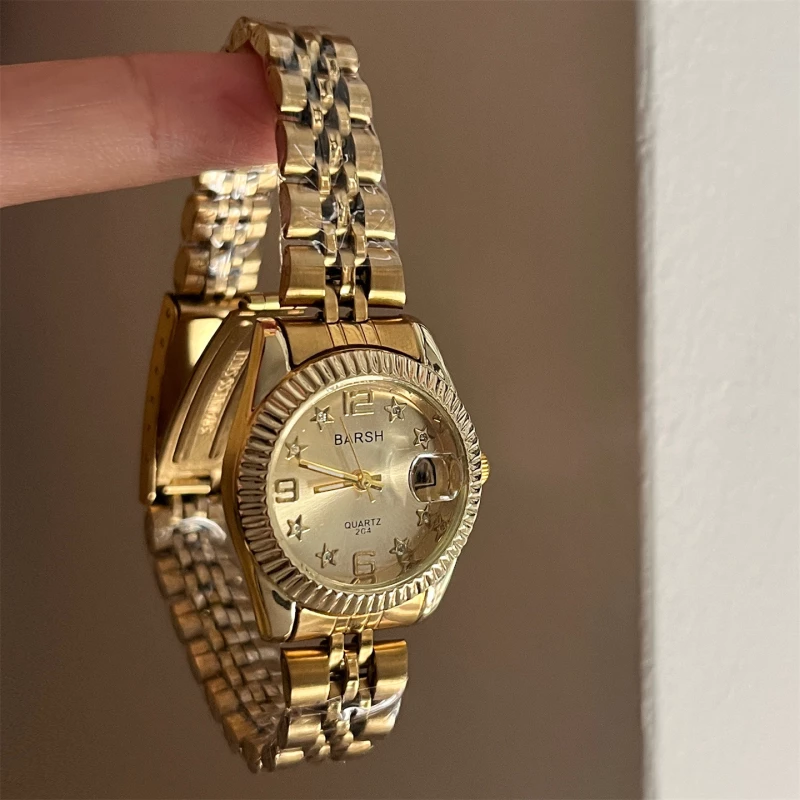 - Strap Material: Alloy (gold-toned plating, link bracelet design)