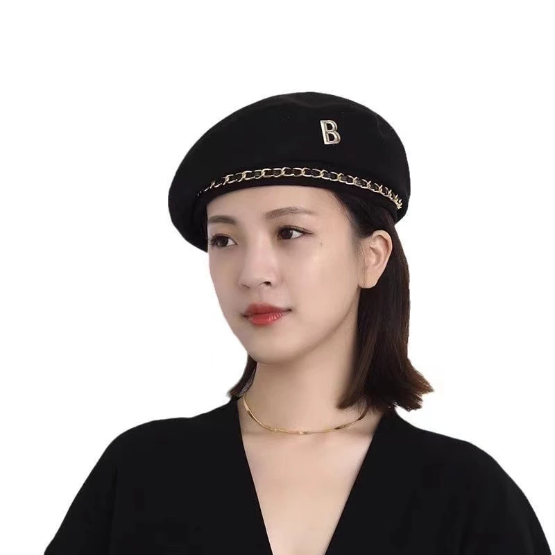 This chic beret is a versatile fashion accessory designed to elevate your everyday casual and semi-formal looks. It features a smooth, everyday fabric construction in a warm, neutral brown tone, accented with a polished silver-tone chain trim and a minimalist "B" emblem for a modern, sophisticated finish.