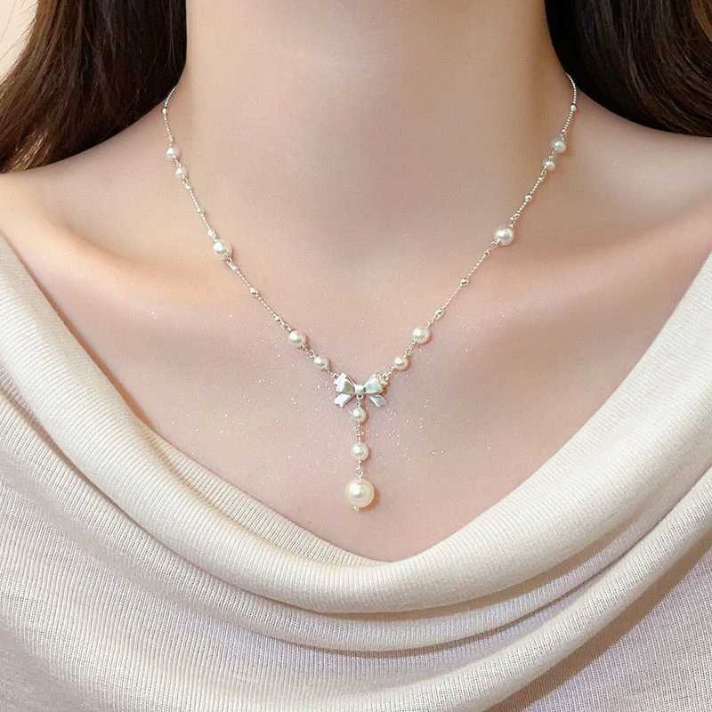 Add a soft, elegant touch to your look with this Y-shaped necklace. Crafted from durable silver color alloy, it features scattered artificial pearls, a delicate butterfly accent, and a pendant pearl tassel for subtle movement. The adjustable chain length allows versatile styling (collar length for daily looks, longer length for layered wear), making it suitable for casual outings, gatherings, or modest occasions.