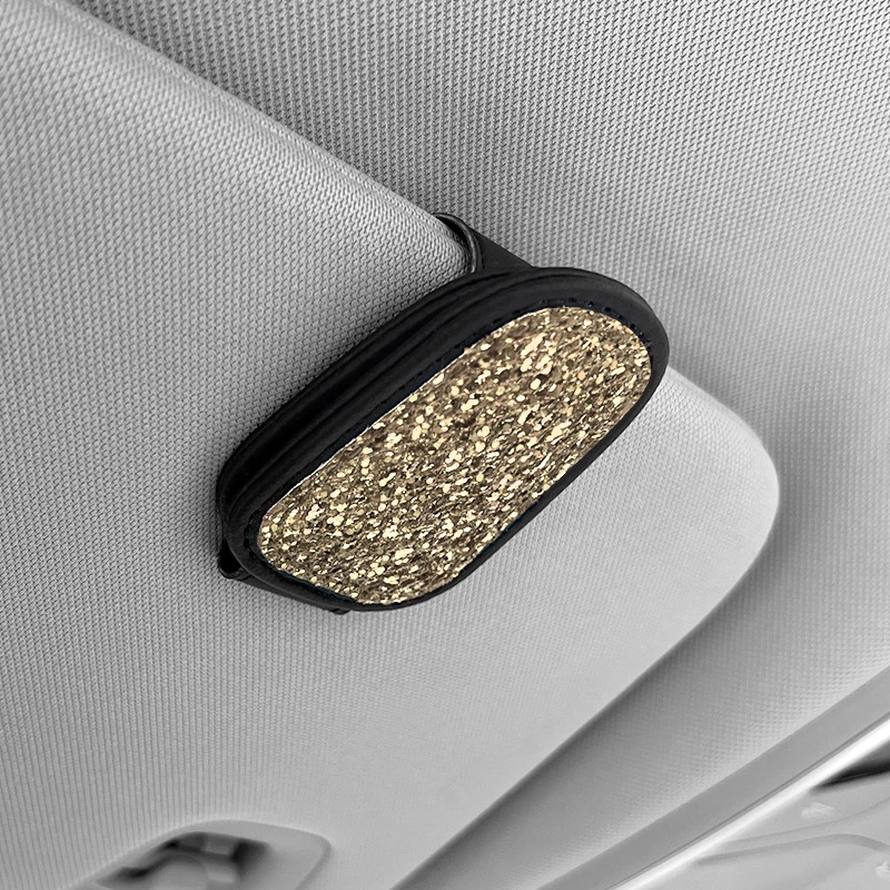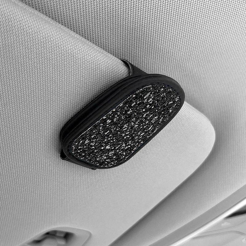 This car sun visor sunglasses clip is designed with a decorative surface of sparkling artificial rhinestones, adding a stylish, eye-catching touch to your vehicle’s interior. It securely clips onto most standard sun visors, keeping sunglasses, eyeglasses, or even face masks within easy reach without obstructing your view.