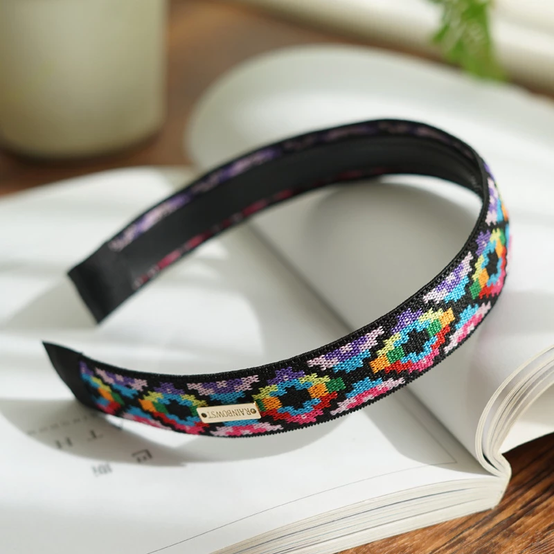 This is a women's fashion headband, designed for daily wear and casual styling. It features a padded, comfortable design with a vibrant pixelated pattern in a mix of neon pink, blue, green, and yellow hues on a black background. The headband sits securely and comfortably on the head, and is intended as a decorative hair accessory to hold hair in place while adding a fun, modern touch to an outfit.