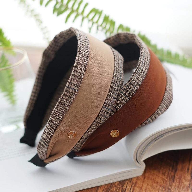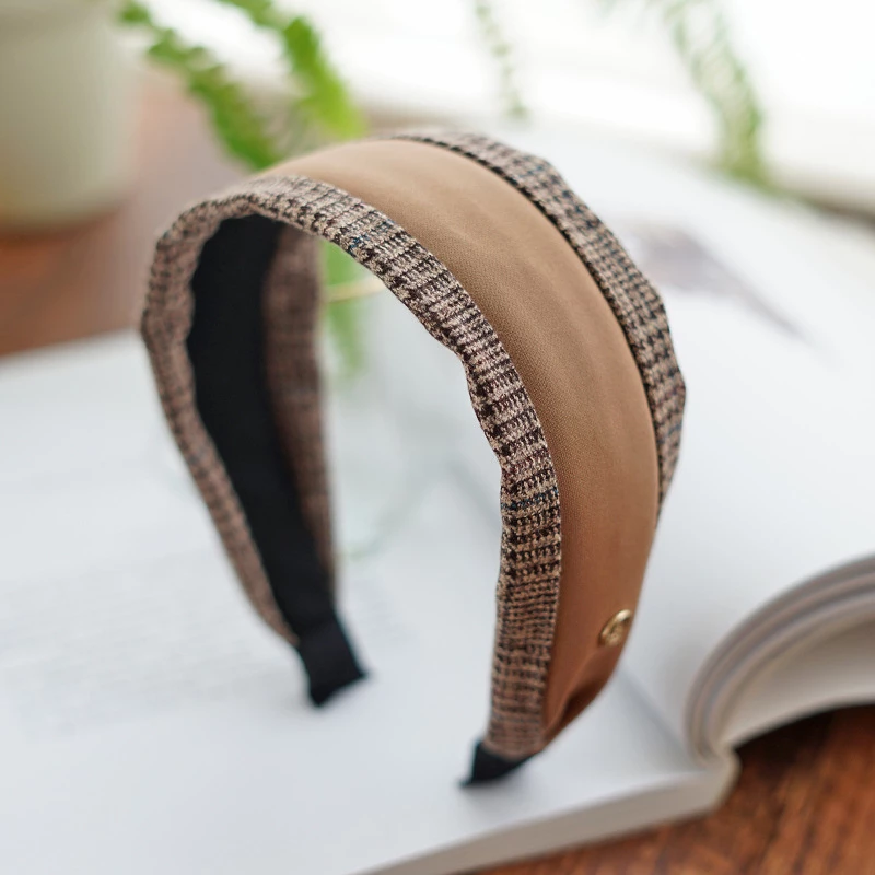 - Design: Wide headband with contrasting edge panels and a stud detail