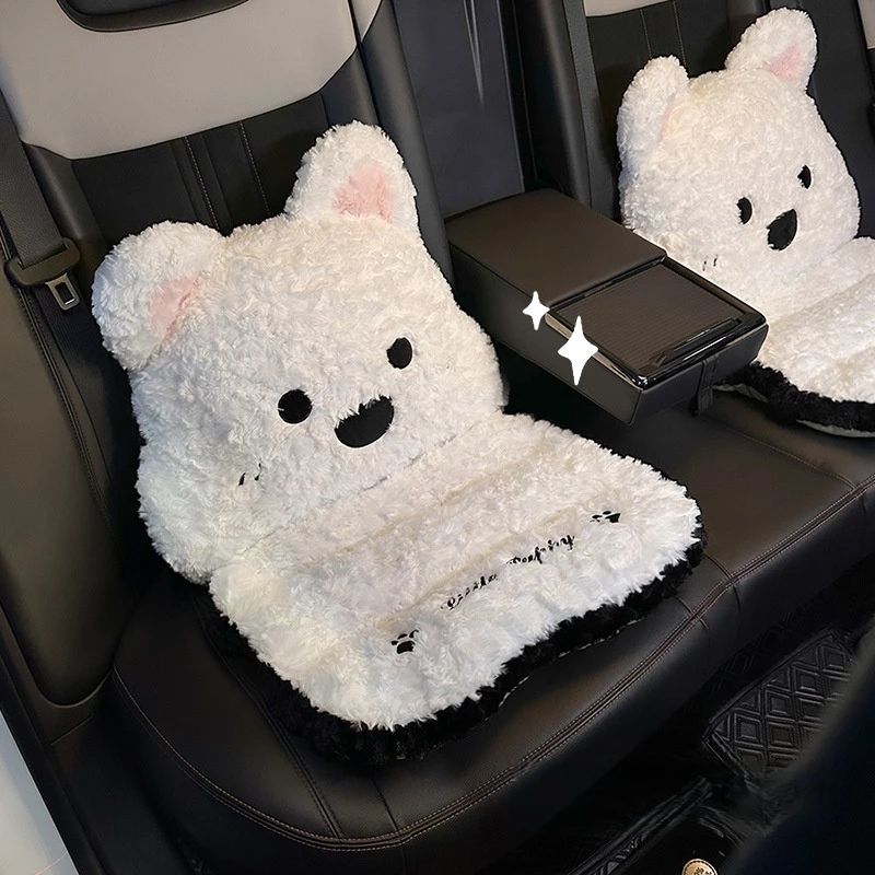 This car seat cushion set features a playful animal design (kitten/bear) with a fluffy plush texture (white/brown tones). Made of soft plush fabric, the cushions add warmth and comfort to front car seats, while the tailored shape fits most standard vehicle seats. The set is easy to place (no complex installation) and adds a cozy, decorative touch to your car’s interior. It balances soft comfort with cute aesthetics, ideal for enhancing driving comfort in cooler weather.