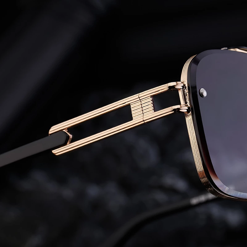 Step into bold retro-modern style with these double-bridge gradient square sunglasses. Crafted from durable metal alloy in a polished gold-tone finish and PC plastic temple arms in matte black, they feature a structured square silhouette with a classic double-bridge design and hollowed metal temple details for a sophisticated, statement-making vibe. The UV400 protective gradient gray lenses block 100% of harmful UVA/UVB rays, ensuring reliable eye protection during all outdoor activities.