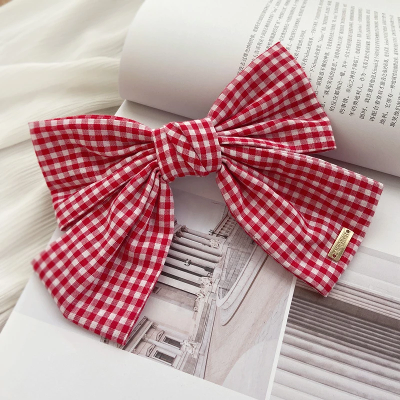 This is a fashion hair accessory. It features a large, double-layered bow made from a classic black-and-white gingham fabric, attached to a secure clip. The bold, retro-inspired design adds a fresh, stylish touch to half-up or updo hairstyles, making it perfect for casual everyday wear.
