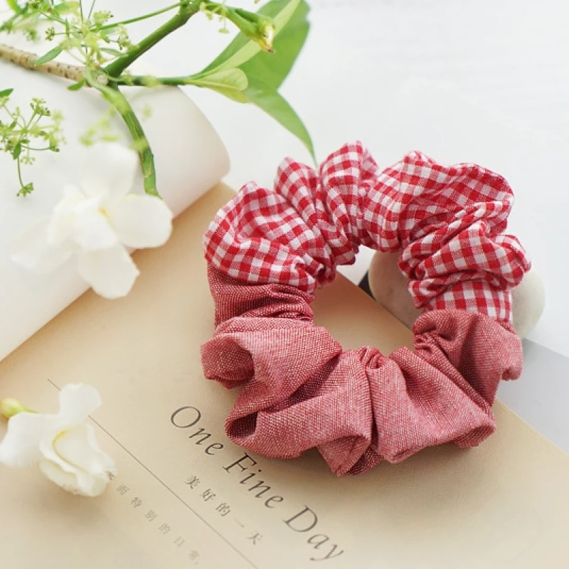 This is a set of women's fashion hair scrunchies, designed for daily wear and casual styling. Each scrunchie features a reversible two-tone design: one side is a classic gingham print, and the other is a matching solid color, made from soft, breathable cotton-blend fabric. They provide a gentle yet secure hold for ponytails, buns, or half-up hairstyles, while the preppy, versatile design adds a fresh, youthful touch to any look.