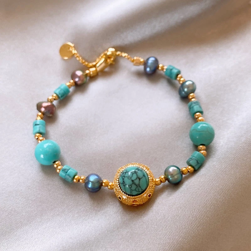 Disclaimer: This product is a fashion accessory crafted from alloy (with gold plating), faux turquoise-style materials, and faux pearls. It does not contain real gold, precious metals, natural gemstones, or natural pearls.