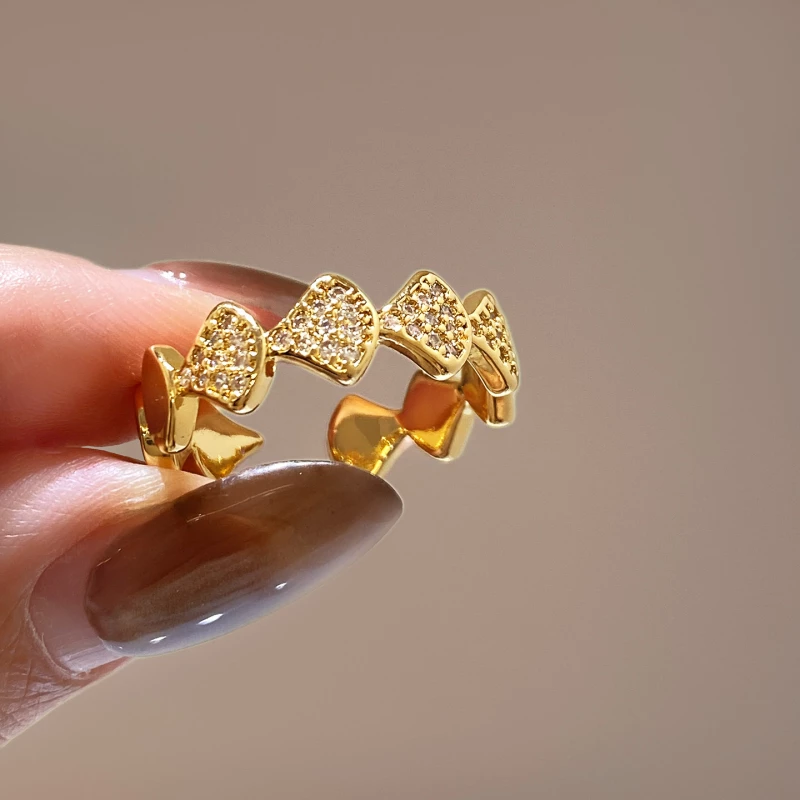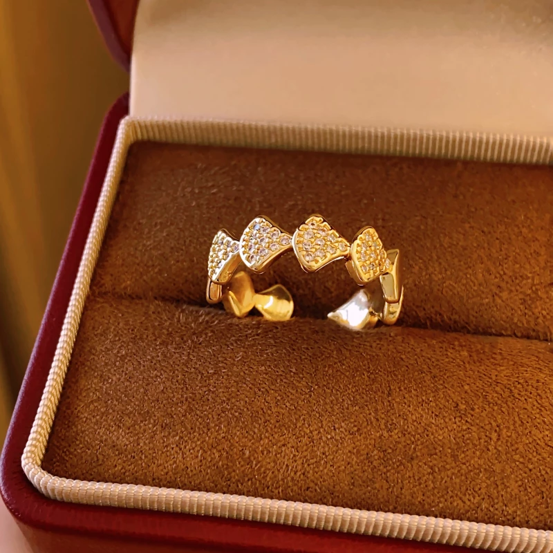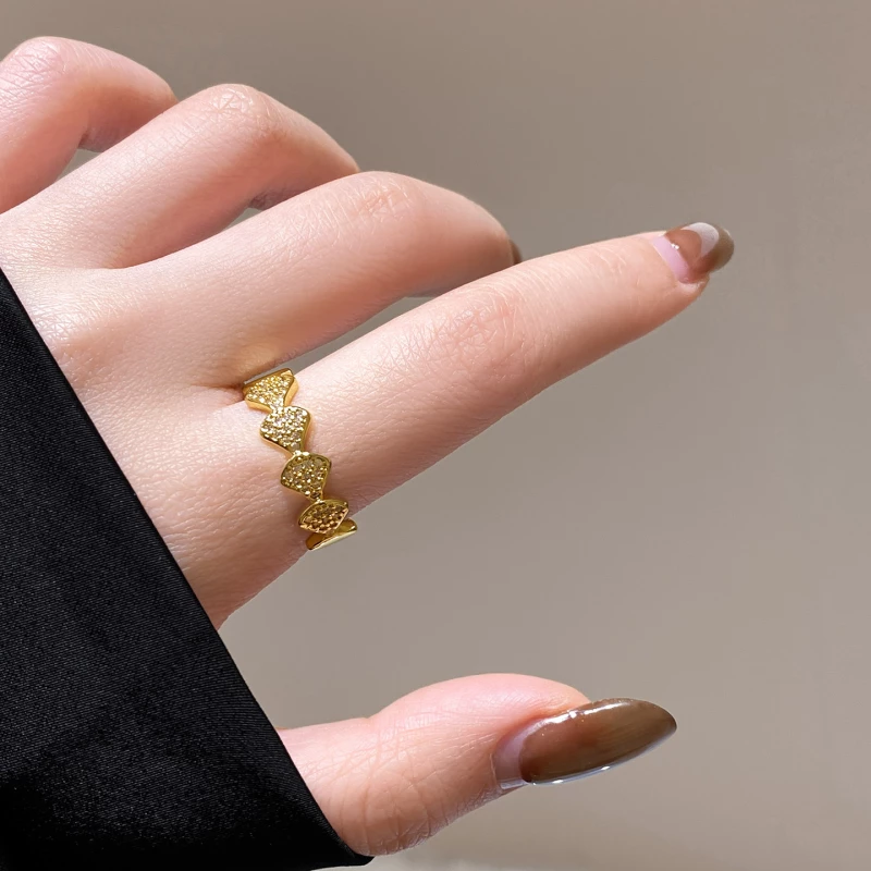 This charming open heart ring combines playful design with subtle sparkle, perfect for adding a romantic touch to everyday style. Crafted from durable gold-tone alloy, the band features a series of small, heart-shaped motifs—each encrusted with shimmering cubic zirconia—for a luminous, eye-catching look. The open design offers a flexible fit for most finger sizes, while the polished gold-tone finish ensures a sleek, stylish appearance. Lightweight and comfortable for all-day wear, this piece is a versatile addition to any fashion jewelry collection, ideal for gifting or personal styling.