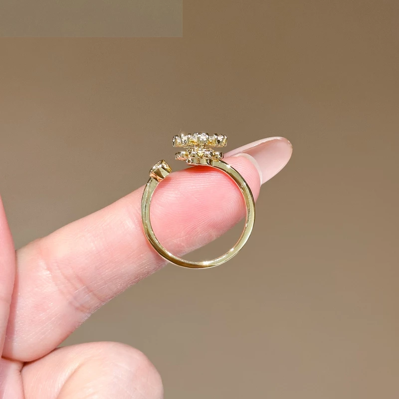 This double-ring set is crafted from durable golden-tone alloy: the main ring features a 3D floral design encrusted with cubic zirconias, while the matching slim band adds a small cubic zirconia accent for layered styling. The warm golden finish pairs with the brilliant sparkle of the zirconias, creating a refined, glamorous look that suits daily wear, dinners, or casual gatherings.