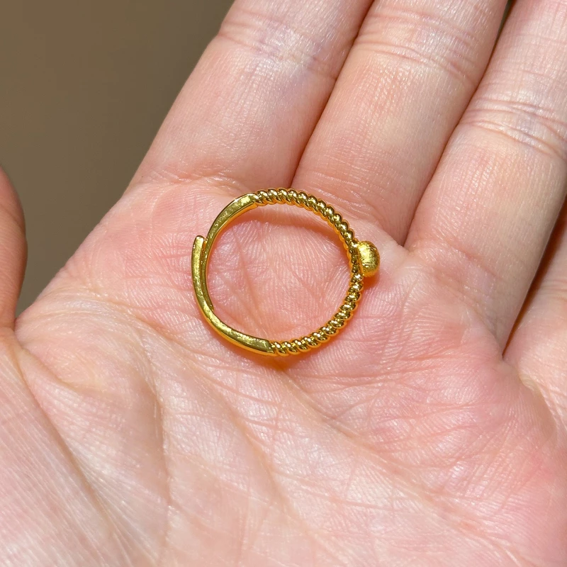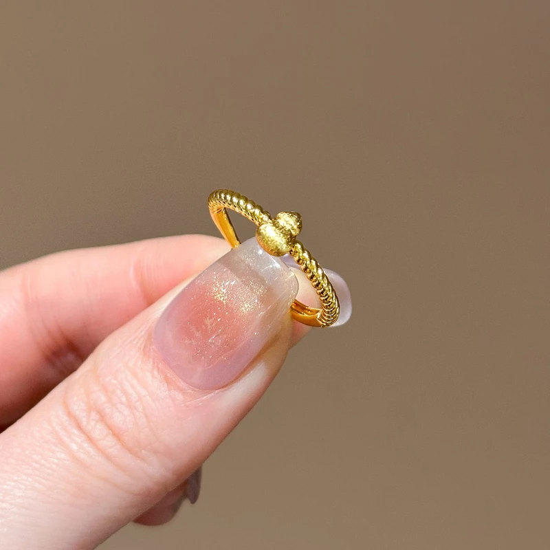 Lightweight and adjustable (via the open band), it fits most finger sizes comfortably. The gourd element (a symbol of good fortune in many cultures) combined with the sleek golden-tone texture makes it a versatile accessory that balances cultural charm and understated elegance.