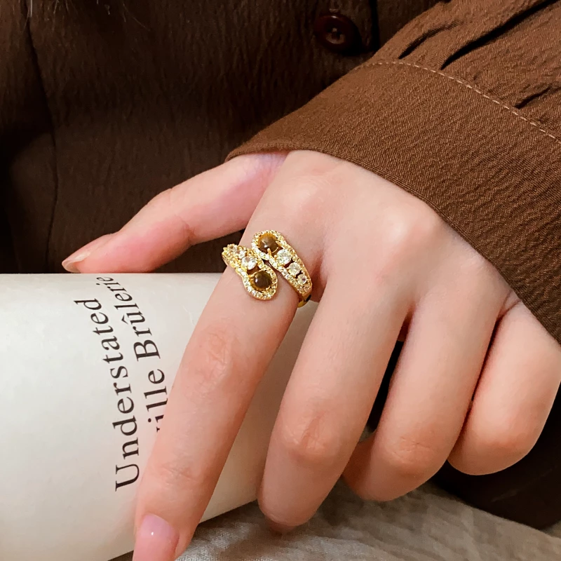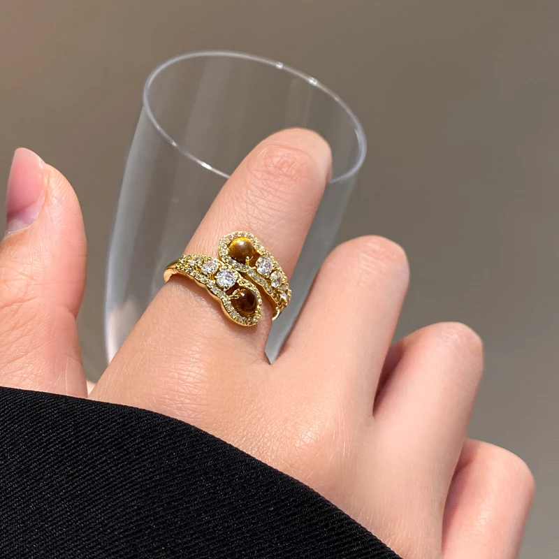 This stylish ring features a sleek twisted design, crafted from durable golden-tone alloy for a polished, sophisticated finish. It’s adorned with warm amber-tone artificial stones and shimmering cubic zirconia accents—creating a subtle, luminous look that complements both daily and semi-formal attire.