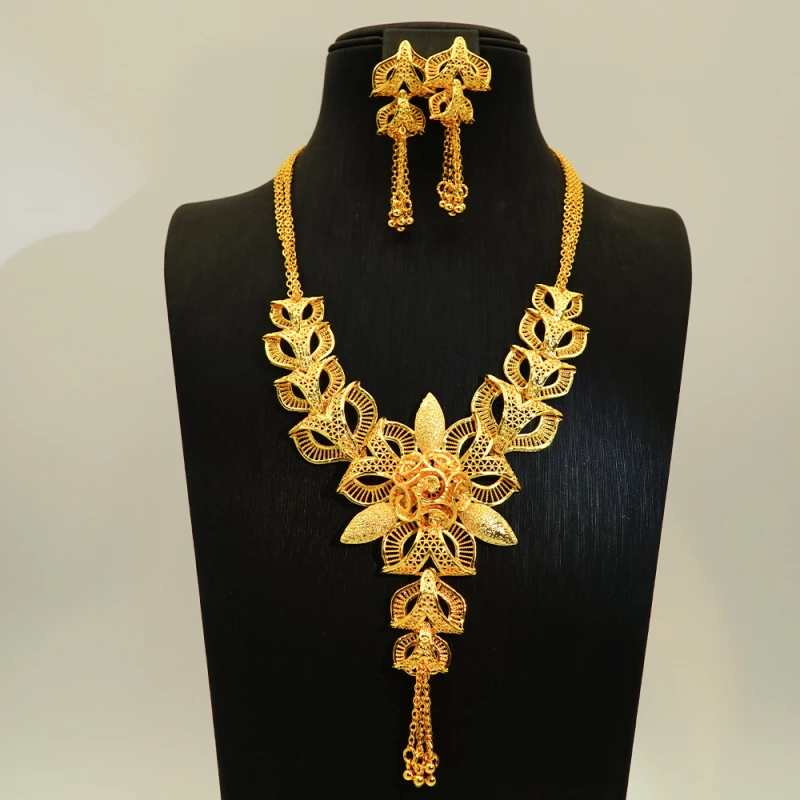 Lightweight and designed for comfortable wear, the necklace includes a secure clasp, and the earrings use stable post backs. This set is ideal for formal events, festive gatherings, or elegant daily attire, adding a touch of refined glamour to any outfit.