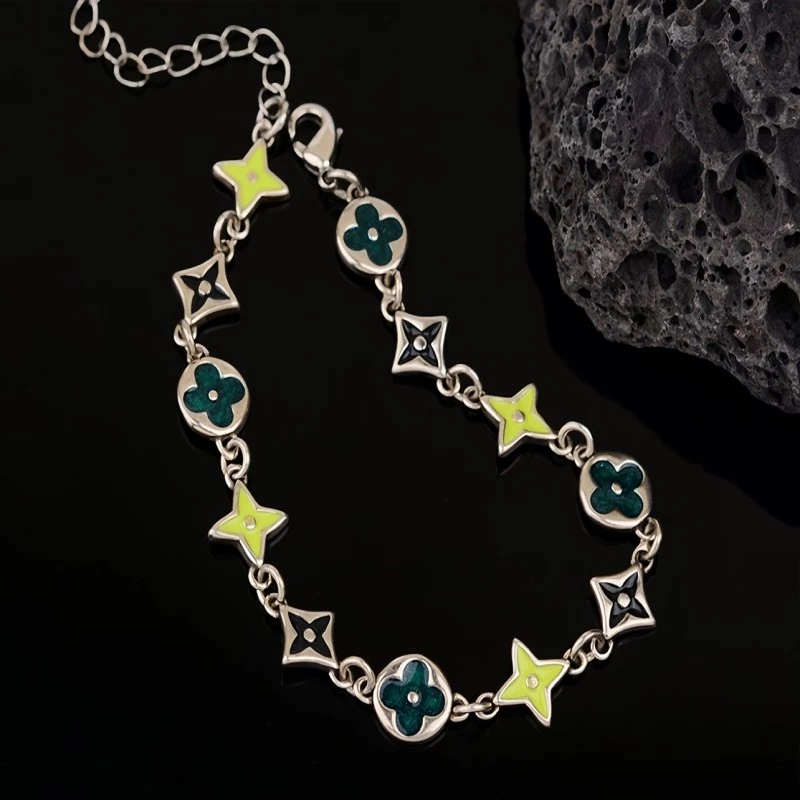 Design: Exquisite necklace adorned with star shaped and clover enamel pendants; Adjust the length by extending the chain (suitable for most regular wrist sizes)