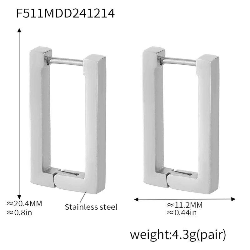 These modern, minimalist earrings feature a polished gold-tone stainless steel construction with a clean rectangular hoop silhouette. The secure stud design ensures a comfortable, stay-in-place fit, while the durable, hypoallergenic stainless steel is scratch-resistant and built to last.