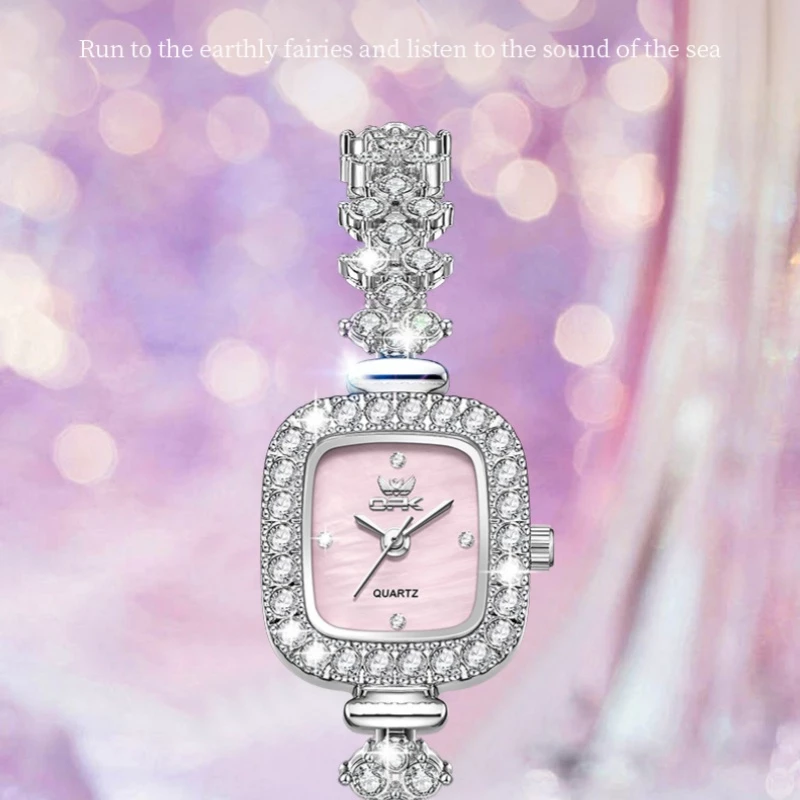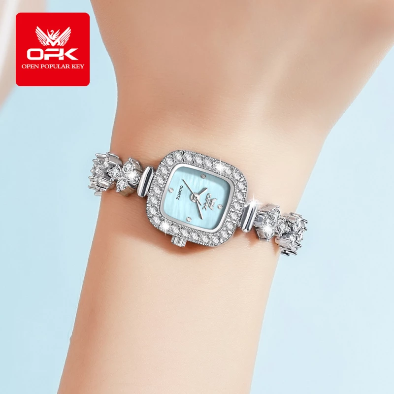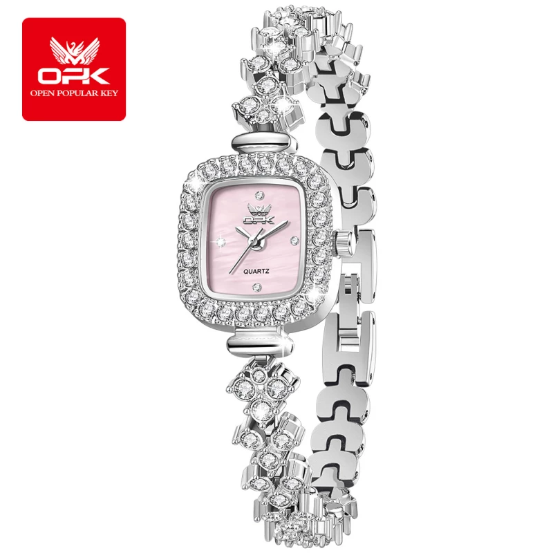 - Strap Material: Alloy (polished silver, crystal-encrusted bracelet design)