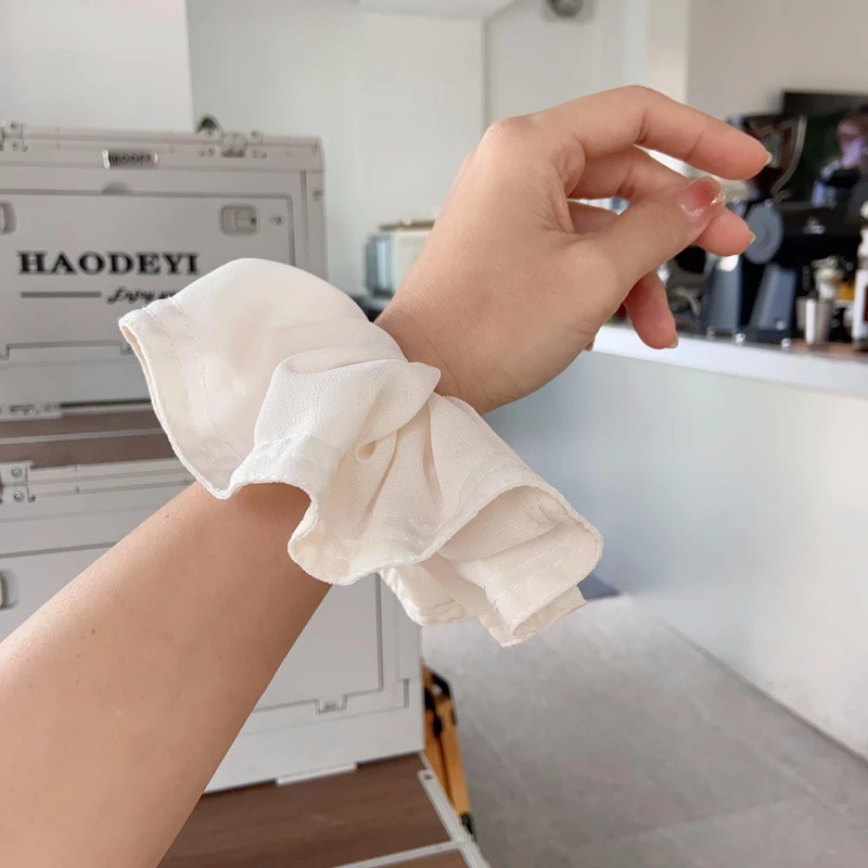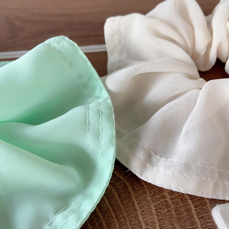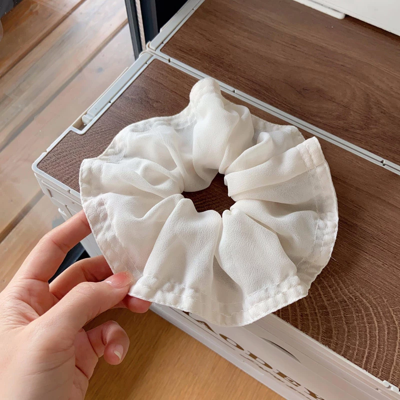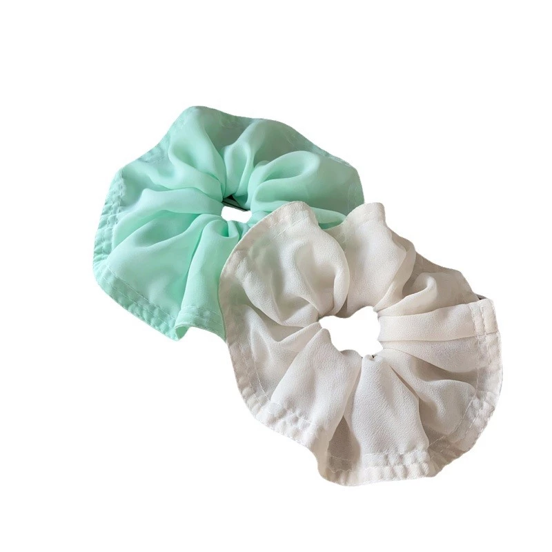 This is a women's fashion hair scrunchie, designed for daily wear and casual styling. It features an oversized, lightweight chiffon fabric construction that creates a voluminous, ruffled silhouette. The scrunchie provides a gentle yet secure hold for hair, while its soft, flowing texture adds a fresh, feminine touch to ponytails, buns, or half-up hairstyles.