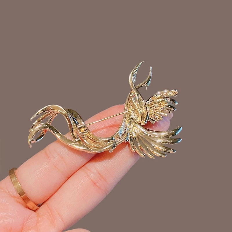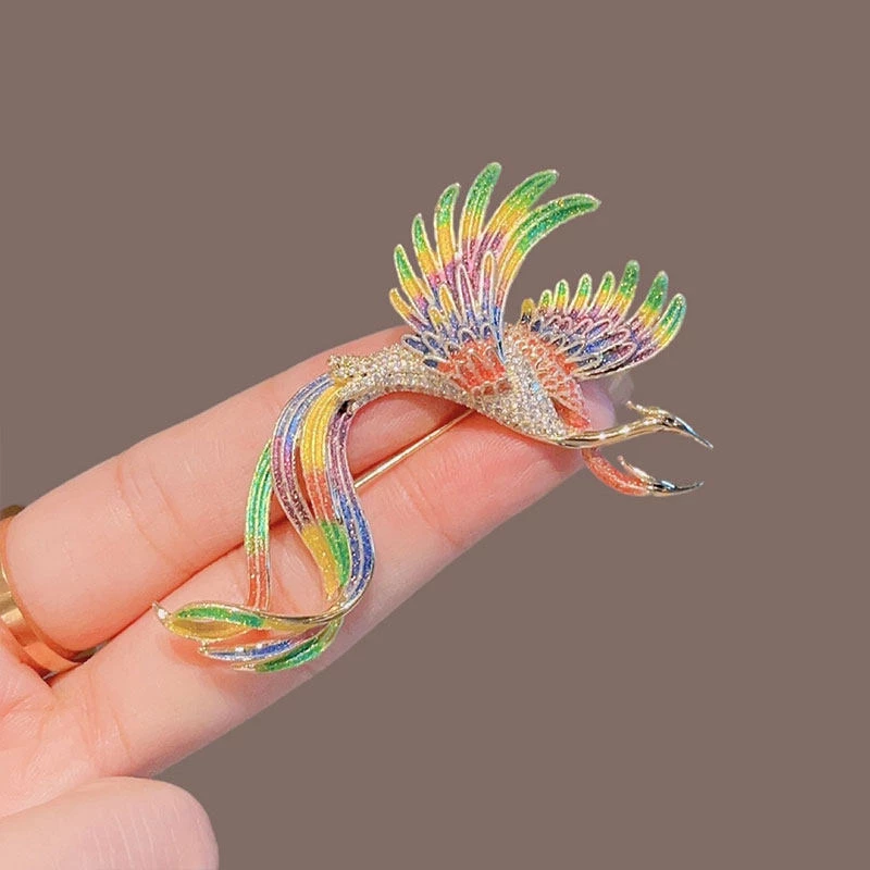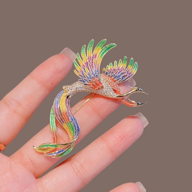 Elevate your outfits with this intricately designed phoenix brooch, crafted from durable alloy with a polished gold-tone finish. The piece features vibrant, multi-color artificial cubic zirconia accents (mimicking the phoenix’s iconic iridescent plumage) across its wings and tail, plus detailed texturing for a lifelike, elegant appearance. The secure pin-back design ensures stable placement on blouses, coats, or scarves, making it suitable for special occasions, cultural-themed styling, or daily wear that calls for subtle grandeur. Lightweight yet visually striking, this fashion accessory blends mythical charm with sophisticated sparkle.