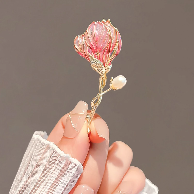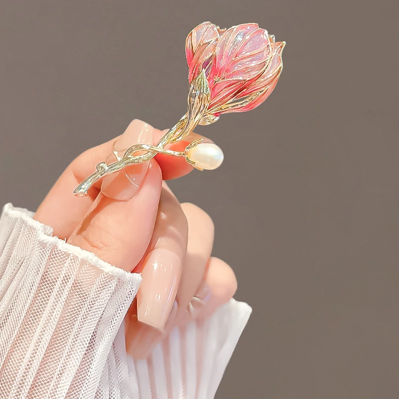 This elegant brooch features a lifelike pink flower design (crafted with translucent enamel and gold-tone alloy detailing) paired with a small artificial pearl accent, adding a soft, romantic touch to any ensemble. The durable alloy pin securely attaches to clothing, scarves, or bags, while the lightweight construction ensures comfortable wear. Perfect for elevating daily outfits, formal occasions, or as a delicate gift, this fashion accessory blends botanical charm with refined style.