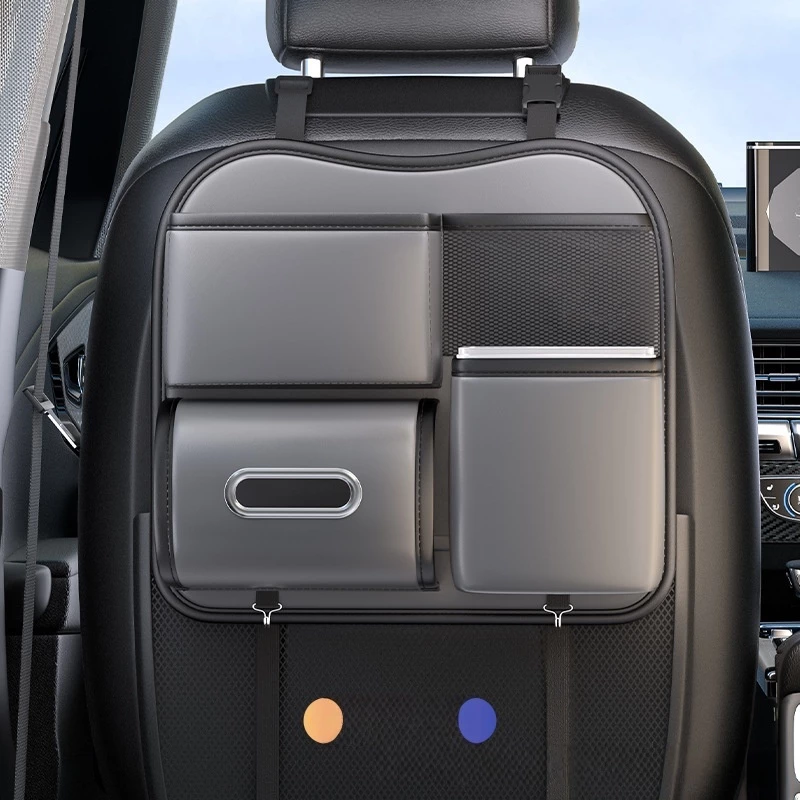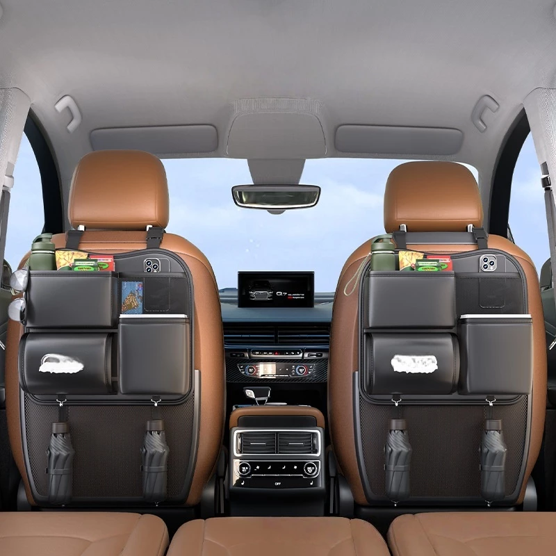 This premium black car seat back organizer is designed to enhance backseat storage and keep your vehicle interior neat and organized, providing a practical solution for travel essentials, electronics, and daily items.