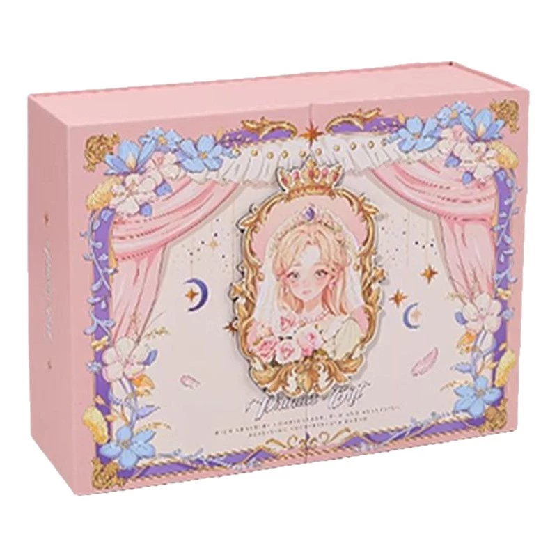 Crafted from artificial glass beads, alloy, and fabric details (no precious metals or natural gemstones), the kit is designed for creative play, allowing children to make personalized necklaces, bracelets, and hair clips. The organized, divided compartments keep materials tidy, while the whimsical, pastel color palette and fairy-tale motifs make it perfect for dress-up activities, birthday gifts, or casual styling.