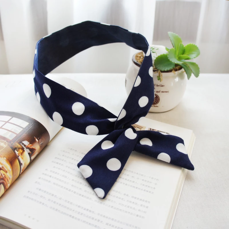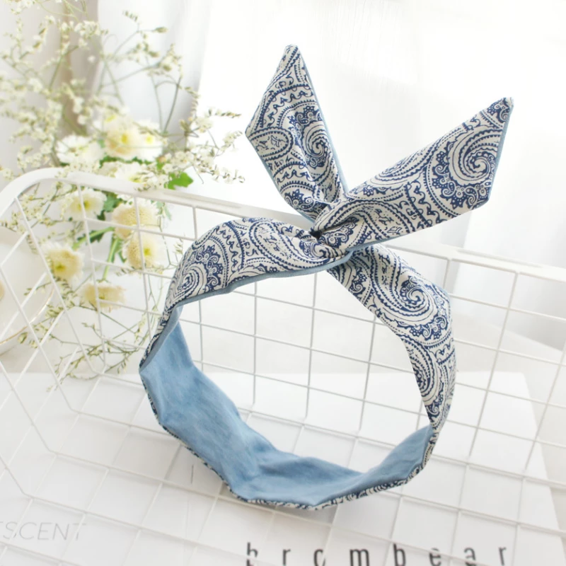 This is a women's fashion headband, designed for daily wear and casual styling. It features a wide, soft fabric base with a variety of blue-toned prints—including florals, polka dots, paisley, and plaid—finished with a knotted center for a secure, comfortable fit. The headband is intended as a decorative hair accessory to hold hair in place and add a fresh, vibrant touch to an outfit.