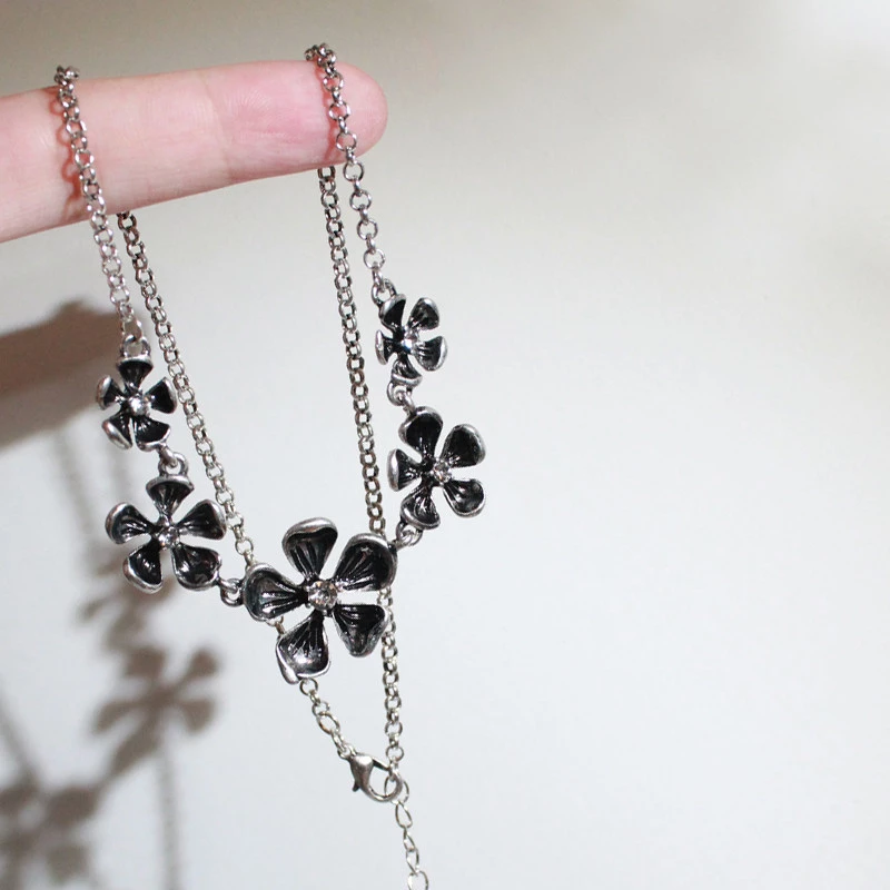 This necklace is crafted from durable rose-tone alloy, featuring a link design of 3D flower motifs (each accented with clear cubic zirconias) paired with a adjustable chain clasp. The soft rose-tone finish complements the delicate flower details and subtle sparkle, creating a refined, nature-inspired look ideal for daily wear, casual outings, or feminine styling.