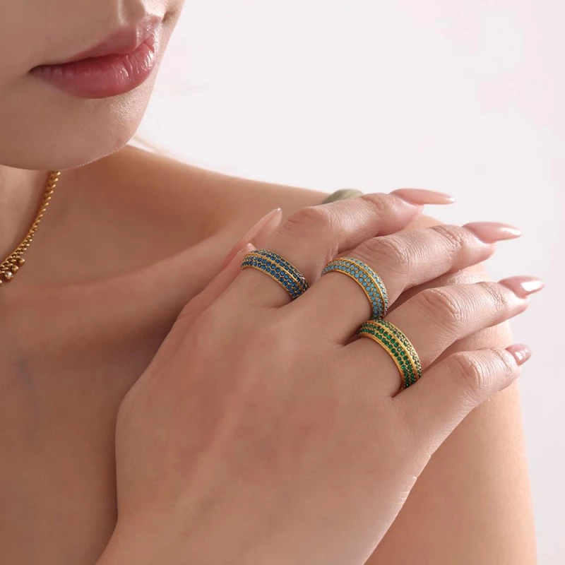 The 7mm-wide band offers a substantial yet comfortable fit, and it is available in sizes 6, 7, and 8 to suit different finger sizes. At 6.2g, it is lightweight enough for all-day wear, making it ideal for everyday styling, special occasions, or as a thoughtful gift for someone who loves colorful, statement jewelry.