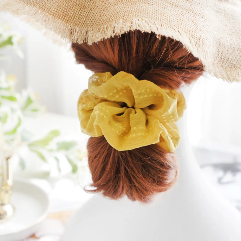 This is a fashion hair scrunchie designed for daily wear. It features an oversized, voluminous construction made from lightweight, semi-sheer chiffon fabric with a subtle textured pattern, providing a gentle yet secure hold for ponytails, buns, or half-up hairstyles, while adding a soft, airy decorative element to an outfit.