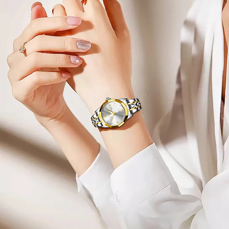 - Band Material: Alloy (two-tone: silver and gold, bracelet-style)