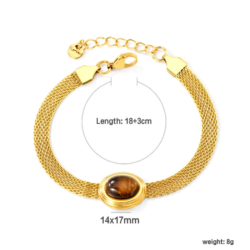 - Style: Multi-design bracelets (sunburst/oval accents; flexible mesh bands)