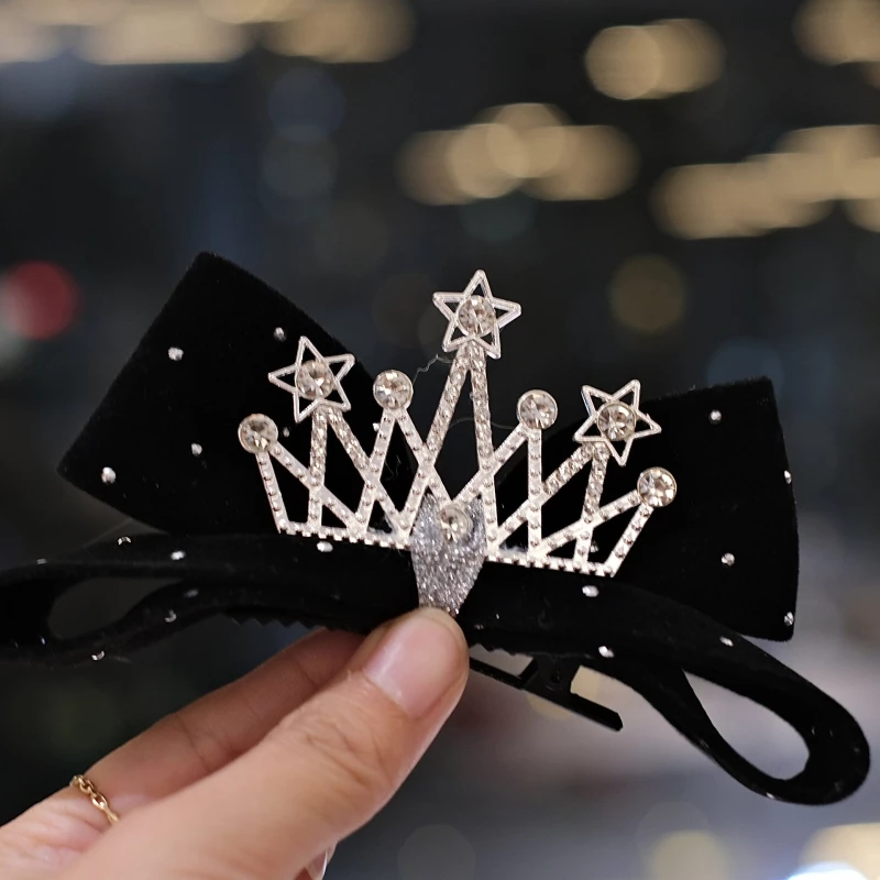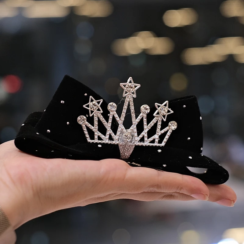 Elevate hairstyles with this 2-piece hair clip set, featuring plush velvet bows (in black and burgundy) topped with silver-tone alloy crowns adorned with synthetic crystals and star details. The shimmering, regal design creates a polished, eye-catching look—ideal for parties, formal events, or adding a trendy touch to daily wear.